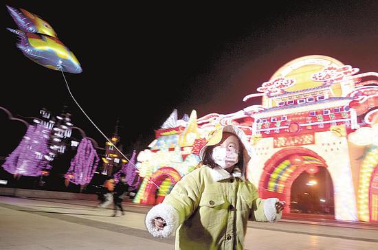 2月11日除夕夜,武汉两江四岸灯光璀璨,喜迎牛年的到来。牛年新春佳节期间,武汉长江灯光秀连续八晚滚动展播。不远处,被金黄色的灯光照得透亮的黄鹤楼清晰可见。章帆指着黄鹤楼跟儿子说:“明天一早就带你去黄鹤楼,猜灯谜。还有好多好玩的景点等着我们呢!”