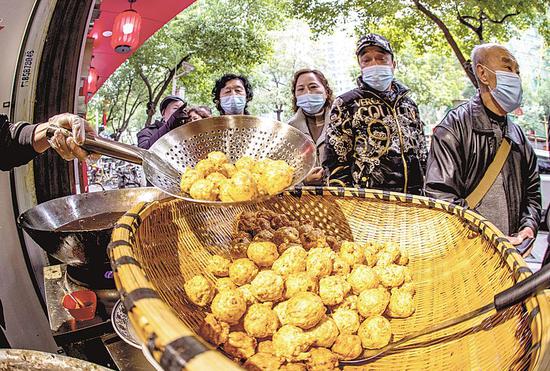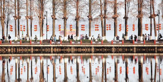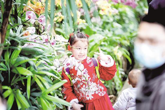 2月12日,大年初一,游客在欢乐谷观看舞狮表演。 春节来临,中科院武汉植物园,小游客与兰花合影。100多种8000余株兰花,景观温室摇身一变,成为兰花大观园。 节日期间,东湖绿道早早就张灯结彩,大红灯笼迎客来。 2月6日,腊月廿五,3岁的陈沐蕾小朋友在汉口里赏花灯。 春节临近,武汉汉口雪松路,市民在排队买炸圆子。炸圆子是武汉人年饭中的一道佳肴。 2月11日除夕夜,游客在武汉长江大桥武昌桥头堡旁拍全家福。“来,看这里!”游客章帆一家3口在长江边留下了一张合影。章帆是在武汉工作的汉川人,今年为了响应防疫防控要求,留在武汉过年。“在武汉工作了6年,第一次留下来过年,发现武汉原来这么美。”章帆说,“过年的武汉好热闹,白天去了东湖划船,还去了欢乐谷,儿子特别高兴。”