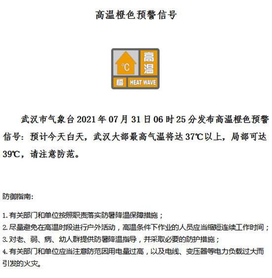 高温橙色预警!今天武汉大部最高温37℃+ 注意防暑