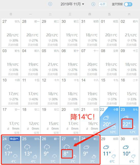 11月湖北的天气阴晴不定,犹如坐“跳楼机”一样起起伏伏,会让你在一周里能感受到四季。