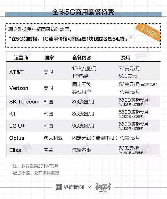 据不完全统计,现行全球5G商用套餐资费基本都在300元人民币/月以上。