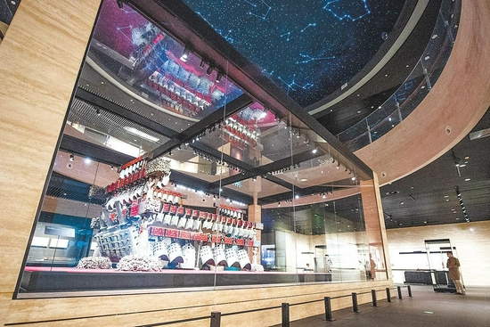 “曾侯乙”展览是对原馆展览的全新改陈,分为“敬天崇祖”“金声玉振”“所尚若陈”“观象授时”“车马仪仗”“永保用享”等部分,多角度阐释曾侯乙文物,展现古代礼乐文明,凸显文物艺术特色。搬进新家的曾侯乙编钟,成该展最大的亮点。它被陈列在宽敞的玻璃展柜中,处于恒温恒湿的环境中,享受着高科技的实时守护,与头顶的“二十八星宿穹顶”相伴,向观众诉说着2400年前的传奇。