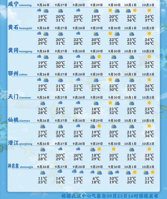 武汉中心气象台9月25日11时预报