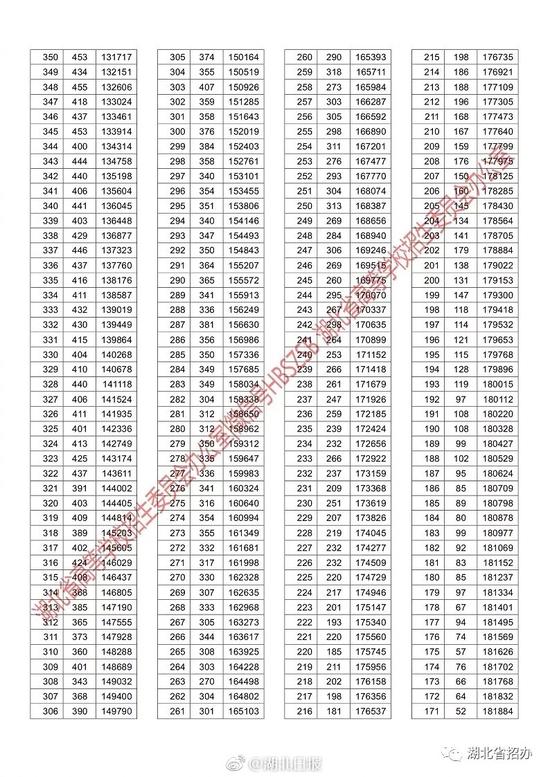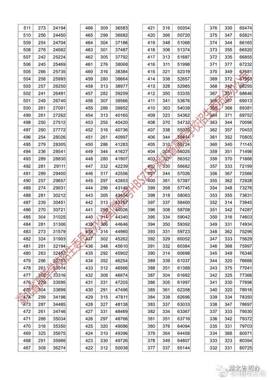 2018湖北高考成绩一分一段表公布