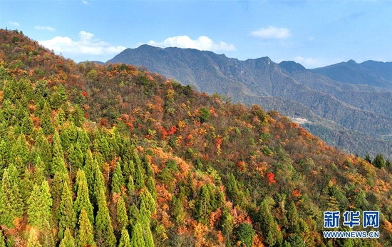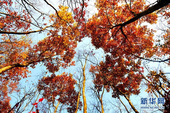 初冬时节,位于湖北省恩施土家族苗族自治州鹤峰县下坪乡境内的湖北木林子国家级自然保护区色彩斑斓,美如画卷。(杨顺丕、陈明斌、向莉丽)