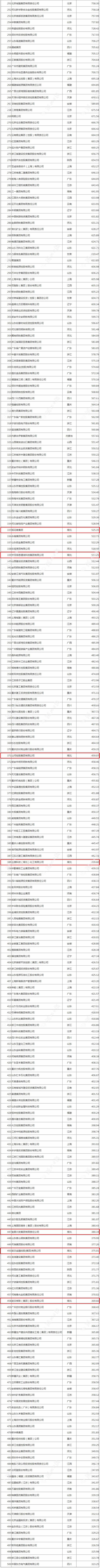 湖北上榜的10家企业分别是:东风汽车集团有限公司、九州通医药集团股份有限公司、卓尔控股有限公司、稻花香集团、中国信息通信科技集团有限公司、山河控股集团有限公司、金澳科技(湖北)化工有限公司、宜昌兴发集团有限责任公司、武汉金融控股(集团)有限公司、武汉商联(集团)股份有限公司。