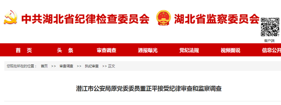 潜江市公安局原党委委员董正平接受纪律审查和监察调查
