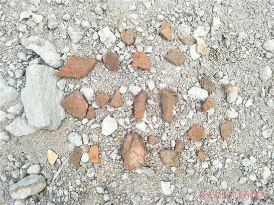 朱金忠仔细观察,发现这些碎片有红色的,也有黑色的,有的呈锥形像古代器皿的脚,有的呈片状像陶器的碎片。