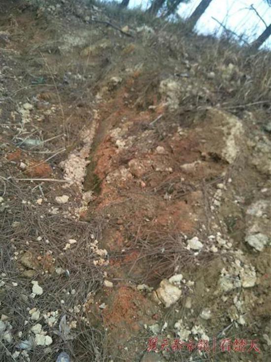 向阳村村民朱申鹏介绍,这片区域原来被茅草覆盖,前两年才开始植树造林。朱金忠认为,是挖机挖掉了茅草,挖掉了表面的土层,这些原本应该埋在地下的碎片才重见天日。