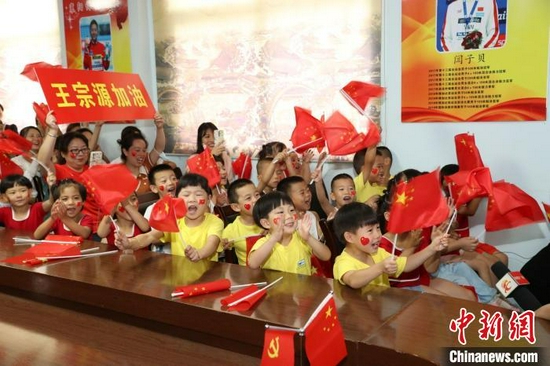 在王宗源的老家,襄阳市体育运动学校师生集体观看直播 杨东 摄与此同时,当天在襄阳市体育运动学校,襄阳市体操队队员与老师也集体观看了比赛直播,见证小将王宗源携手队友谢思埸夺得金牌。