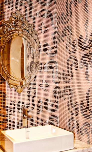 卫生间,马赛克背景墙上挂着法式镜子,简简单单,大气又独具韵味。