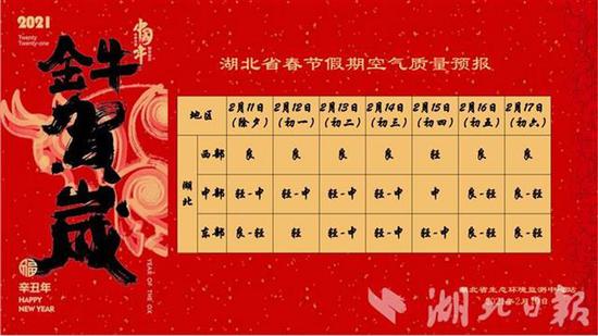 原标题:湖北发布春节假期空气质量预报:无大范围重污染天气过程