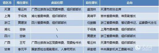 至此,2018年已有天津、上海、浙江、湖北、广西、四川、甘肃等7省(区市)调整省级党委组织部部长。