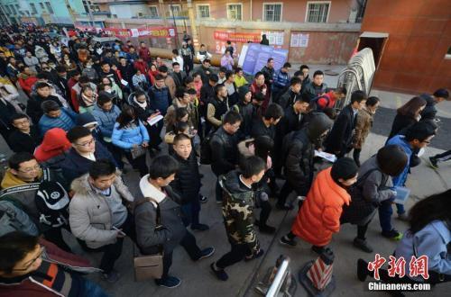 资料图:山西太原一公务员考点,考生排队准备进入考场。武俊杰 摄 - 新浪湖北