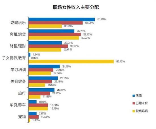 职场妈妈收入主要用于养娃 未婚女性用于享受生活