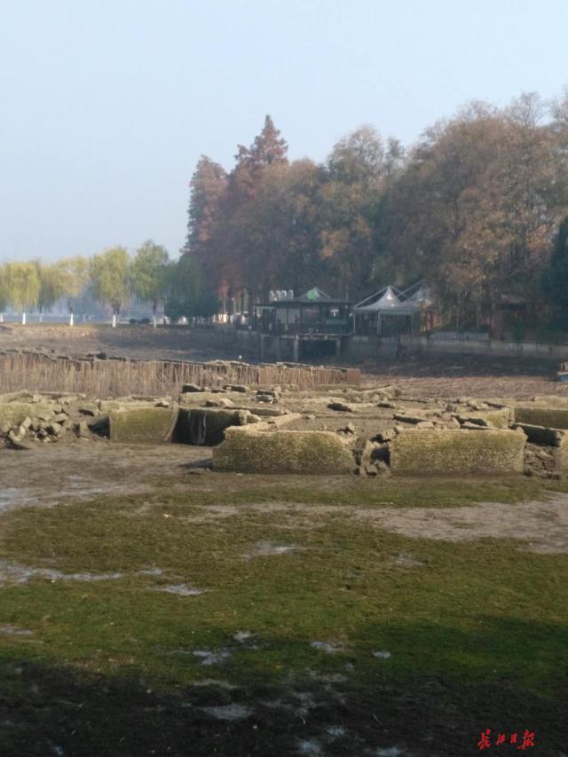 东湖边荷塘被抽干后现成片矮砖墙 引发游客猜想