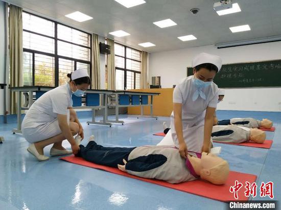 返校学生正在进行技能考核 胡梦思 摄坐了10多个小时火车,该院临床医学专业1708班的冯选河从重庆回到了学校。他说,好久不见老师和同学,非常想念,希望能在毕业前再回学校住一宿,看一看,拍几张合影作为留念。