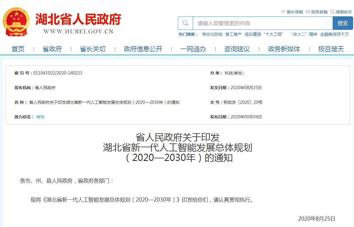 湖北省人民政府网站截图《规划》提出了“三步走”发展目标:初期目标到2022年,实施100个以上人工智能应用示范项目,形成10家以上国内有影响力的人工智能企业,人工智能核心产业规模超过200亿元,带动相关产业规模达到1500亿元;到中期2025年,人工智能创新发展生态体系渐趋完善,人工智能总体技术与产业发展水平全国领先,人工智能核心产业规模超过600亿元,带动相关产业规模达到6000亿元;到2030年,构建成熟的人工智能发展环境,形成关键技术领先、特色应用引领、软件硬件均衡发展的产业体系,人工智能核心产业规模达到1800亿元,带动相关产业规模达1.2万亿元,形成50家以上国内有影响力的人工智能企业。