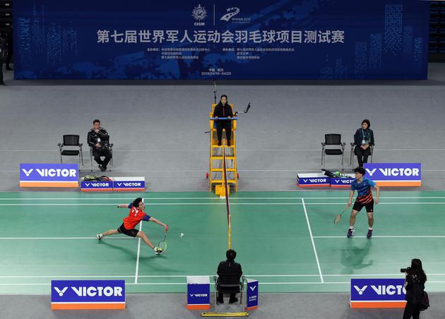 4月16日,第七届世界军人运动会羽毛球项目测试赛在武汉大学卓尔体育馆开幕,来自全国各地的七支队伍112人参加比赛。