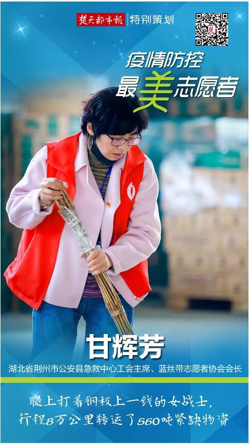拖着带钢板的伤腿也要上前线,身材娇小也能迸发出惊人的干劲和毅力。既是指挥员,又是战斗员,还是协调员, 带领336名蓝丝带志愿者自备车辆,自带干粮,全力投入疫情防控战斗之中。