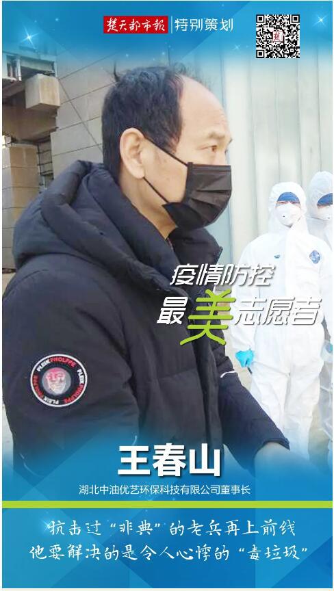 号召全公司员工中止休假,参与处理令人闻风丧胆的“毒垃圾”,是曾参与过抗击“非典”的王春山要解决的重大问题。他带领团队在湖北省襄阳市建设运营的医疗废弃物处置项目,根据统一调度,圆满完成武汉及周边地区的医疗废物收集转运任务。