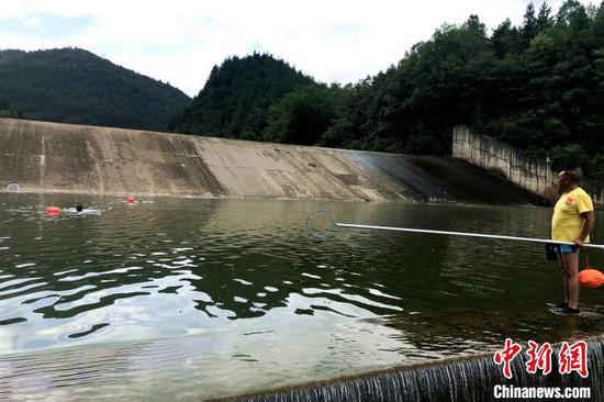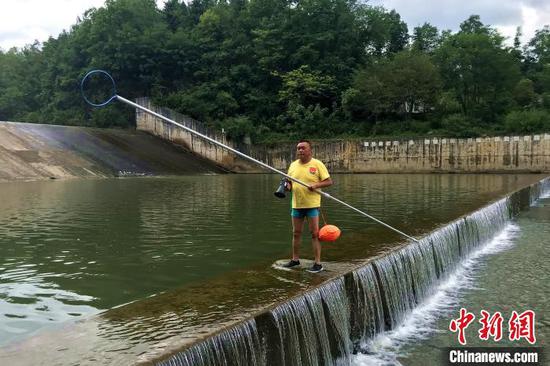 成中诚在河岸边来回巡逻 张宝训 摄中新网恩施8月27日电 (张宝训 熊玮 覃冰心)给市民发游泳浮漂、河岸边来回巡逻、手持喇叭宣传注意事项……在湖北省利川市清江三渡峡,53岁的义务救生员成中诚连日来格外忙碌。