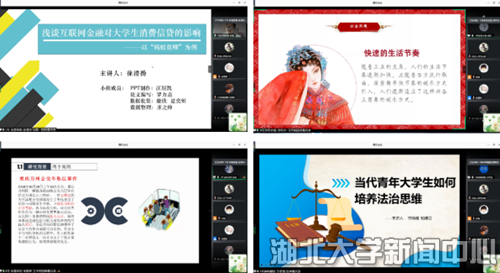 主讲的同学们落落大方、声情并茂。播音与主持艺术专业学生荣婧通过分析“直播热”现象,将网红经济的可持续发展之路娓娓道来。思想政治教育专业张俊结合精彩视频,展示了当代年轻人社交恐惧症的具体表现,并提出较为实用的克服技巧。国际事务与国际关系专业学生林启晟结合新冠肺炎疫情防控,生动讲述了对中国的制度自信和文化自信,表示作为青年大学生,一定会把这种自信融入血脉,好好学习,爱国奋斗,争做担当民族复兴大任的时代新人。