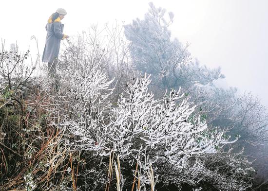 武汉也不甘落后,加入了“下雪朋友圈”。昨日下午,武汉黄陂清凉寨迎来今冬首场雪,但只是一闪而过。清凉寨度假酒店经理谢磊介绍,下午3时许,清凉寨景区内一阵“噼里啪啦”响,原来是下起了冰雹。他赶紧来到景区最高的山顶,一看,哇!小片小片雪花被大风卷起胡乱飘飞,大约持续了40分钟。植物也裹上了一层冰。当时,景区气温为-2℃。