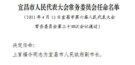 2021.04-- 宜昌市委副书记,市政府副市长、代理市长、党组书记
