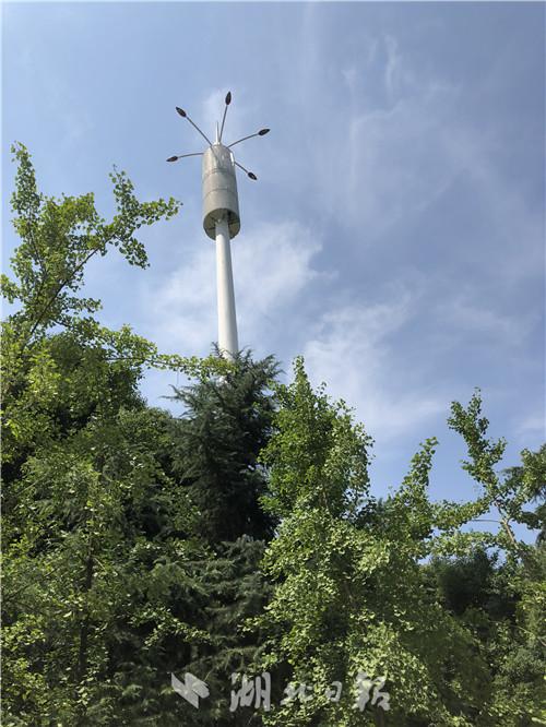 图为武汉市光谷第六小学旁的5G通信基站杆塔。[记者探访]